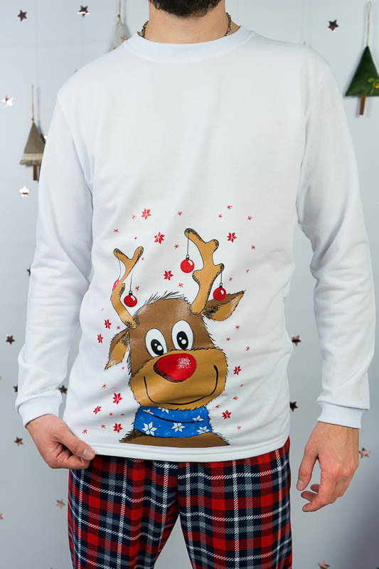 Тепла чоловіча піжама із колекції "Family look" сприяє повноцінному відпочинку та приємному сну. Вільний крій та обробка рукавів еластичними манжетами забезпечать комфорт та зручність. Поєднання однотонного та принтованого в клітинку трикотажного полотна з додаванням яскравого малюнку створять приємний святковий настрій. Сімейну колекцію доповнять моделі арт. 150-300-1263Ж, 300-1263П, 300-1263Д. Виготовлена піжама із начісного футера – матеріалу теплого та комфортного. Лицьова сторона такого полотна гладка та приємна, а з виворітного боку - теплий та м'який начіс. Начіс досить міцний, тому витримає будь-які навантаження, навіть найінтенсивніші рухи не викличуть зламів або складок на речах. Полотно стійке до появи затяжок та ковтунів. Вироби з такого матеріалу зручні, практичні та прослужать Вам дуже довго. Однак є деякі негативні моменти – матерія погано реагує на вплив прямих сонячних променів та високих температур під час прання. Тому, щоб виріб не дав усадку, прати його рекомендують за температури не вище 30°С. Прасувати треба з лицьової сторони.