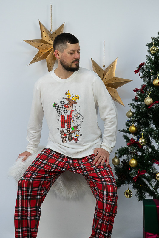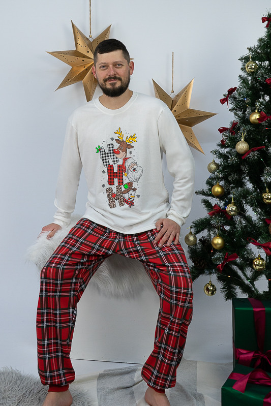 Тепла чоловіча піжама із колекції "Family look" сприяє повноцінному відпочинку та приємному сну. Вільний крій та обробка еластичними манжетами забезпечать комфорт та зручність. Поєднання однотонного та принтованого в клітинку трикотажного полотна з додаванням яскравого малюнку створять приємний святковий настрій. Сімейну колекцію доповнять моделі арт. 150-300-1267Ж, 300-1267П та 300-1267Д. Виготовлена піжама із начісного футера – матеріалу теплого та комфортного. Лицьова сторона такого полотна гладка і приємна, а з виворітного боку - теплий і м'який начіс. Начіс досить міцний, тому витримає будь-які навантаження, навіть найінтенсивніші рухи не викличуть зламів або складок на речах. Полотно стійке до появи затяжок та ковтунів. Вироби з такого матеріалу зручні, практичні та прослужать Вам дуже довго. Однак є деякі негативні моменти – матерія погано реагує на вплив прямих сонячних променів та високих температур під час прання. Тому, щоб виріб не дав усадку, прати його рекомендують за температури не вище 30°C. Прасувати треба з лицьової сторони.