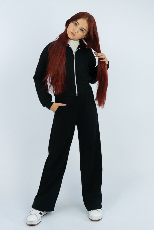 Стильний костюм від ТМ «Гном» стане фаворитом вашого гардероба завдяки комфортному крою та м'якому, але теплому матеріалу. Костюм складається з об'ємної кофти на блискавці та широких штанів. Модель виготовлена з щільного трикотажного полотна – ангора. Це напіввовняне трикотажне полотно, у складі якого 40% вовни та 60% поліестеру. Ангора – штучне полотно, що імітує ангорську вовну. На відміну від натуральної ангори - це полотно більш зносостійке, недороге та невибагливе у догляді. Дане полотно приємне на дотик, має привабливий зовнішній вигляд, має гарну повітропроникність. Переваги ангори – це гіпоалергенність, еластичність, високі теплоізоляційні властивості. Костюм добре тримає початкову форму та не розтягується у місцях найбільшого натягу ниток. Рекомендується делікатне прання у теплій воді.