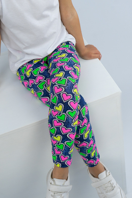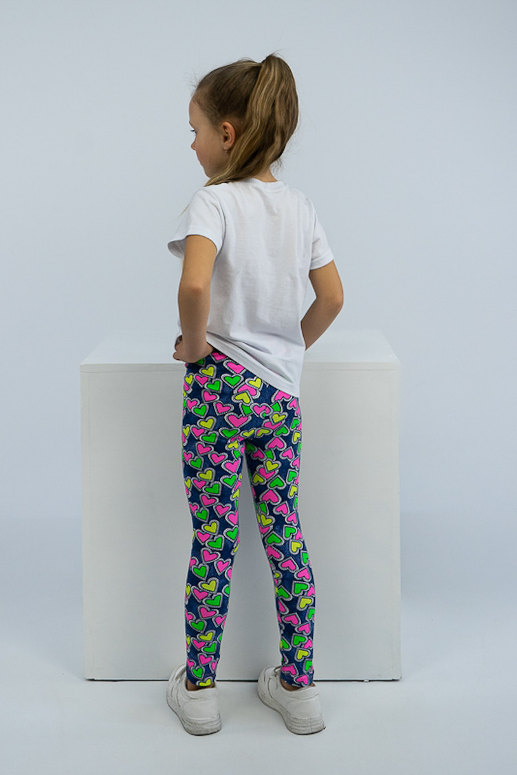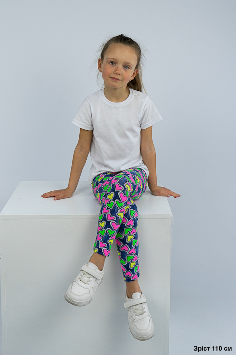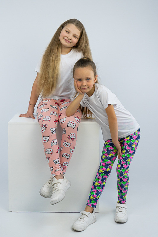 Зручні та комфортні лосини – це модна та практична річ в гардеробі кожної дівчинки. Вони не сковують руху і відмінно вписуються в комплект з футболкою, майкою, топом і т.д. Виготовлені вони із трикотажного матеріалу – фулікра. Вона ж стрейч-кулір – еластичне та приємне до тіла полотно, до складу якого входить 95% бавовни та 5% лайкри, що сприяє матеріалу не витягуватись та зберігати форму після численних прань. Лосини можна прати при температурі до 40°C у делікатному або ручному режимі, не використовувати відбілювачі або порошки з відбілювачами.