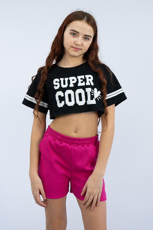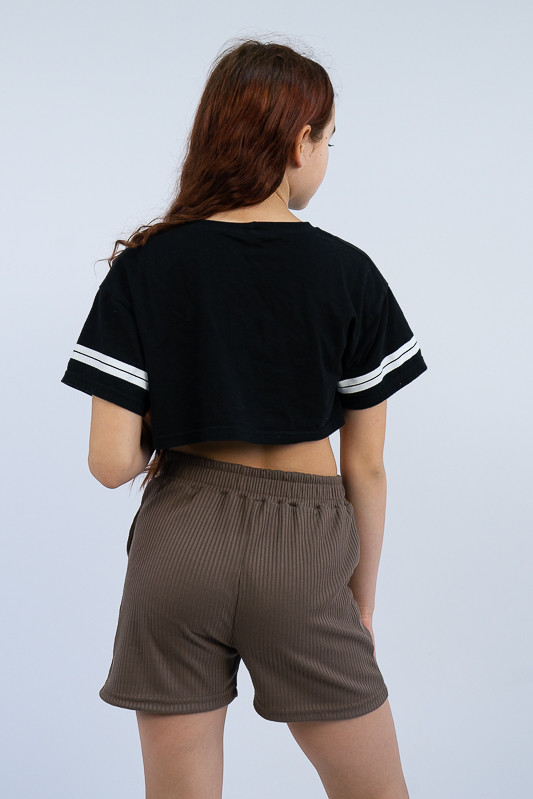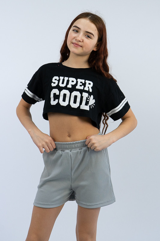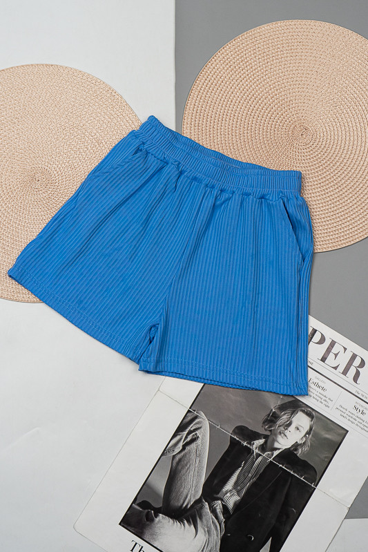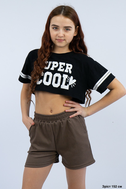 Широкі шорти для дівчаток із зручною посадкою стануть відмінним доповненням до футболки, майки чи топу. Широкий пояс, бічні кишені, а також м'який матеріал роблять шорти зручними та комфортними у повсякденному носінні. Виготовлені вони з трикотажу мустанг, що є стрейчевим полотном у вигляді резинки, тобто чергування лицьових і виворітних рядів. Тканина приємна до тіла, не надто тонка. Підходить для пошиття топів, суконь, стильних трикотажних костюмів, кардиганів та ін. Прати вручну у воді не більше 30°C, сильно не віджимати, прасувати не обов'язково.