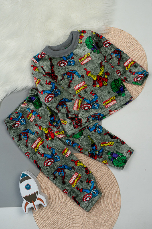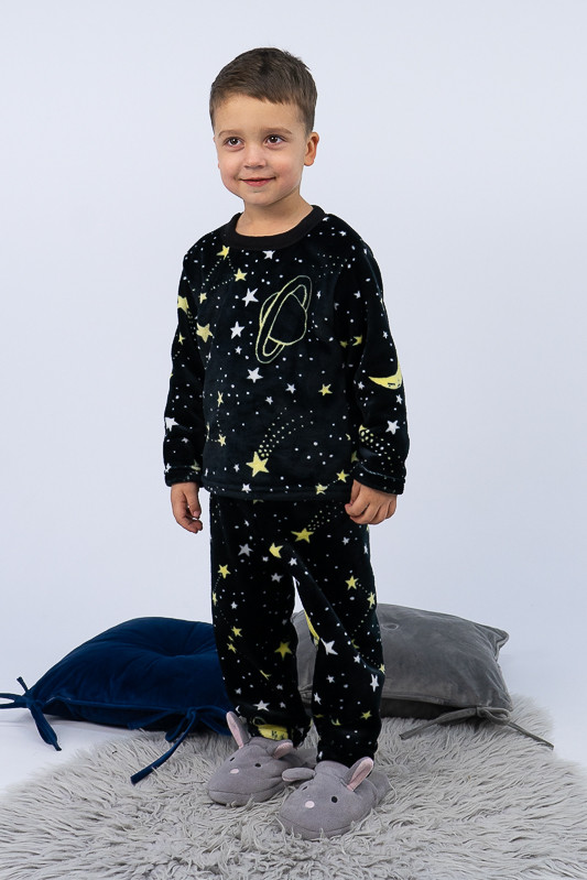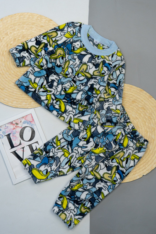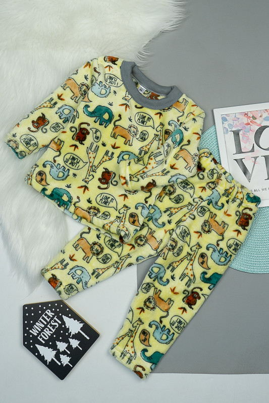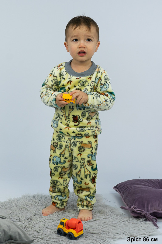 Тепла та яскрава дітяча піжама від ТМ «Гном» – це затишок, комфорт та повноцінний і спокійний сон вашої дитини. М'якість та невагомість матеріалу поєднанні з вільним кроєм, що забезпечює зручність та легкість. Модель виконана з полотна велсофт (махра). Матеріал складається з 75% бавовни 25% поліестеру, м'який і міцний з довгим ворсом, не линяє, не розтягується, не дивлячись на ворсистість, не схильний до утворення ковтунів. Дуже затишний і теплий, не подразнює шкіру, гіпоалергенний і повітропроникний, особливо практичний в зимовий період. Горловину кофти оброблено еластичною бейкою, низ рукавів, низ кофти і низ штанів оброблені еластичним швом. Купуючи цю модель Ви отримуете затишок і комфорт для ваших діток. Піжама розрахована на дітей від 2 до 9 років.