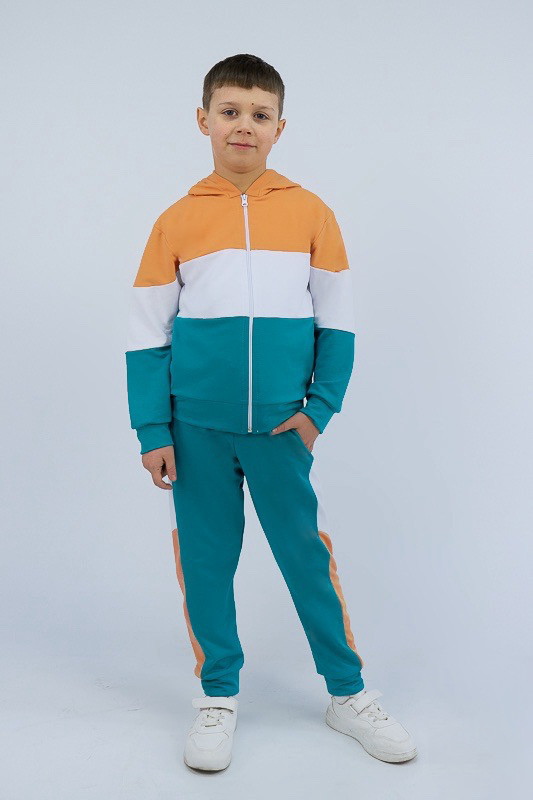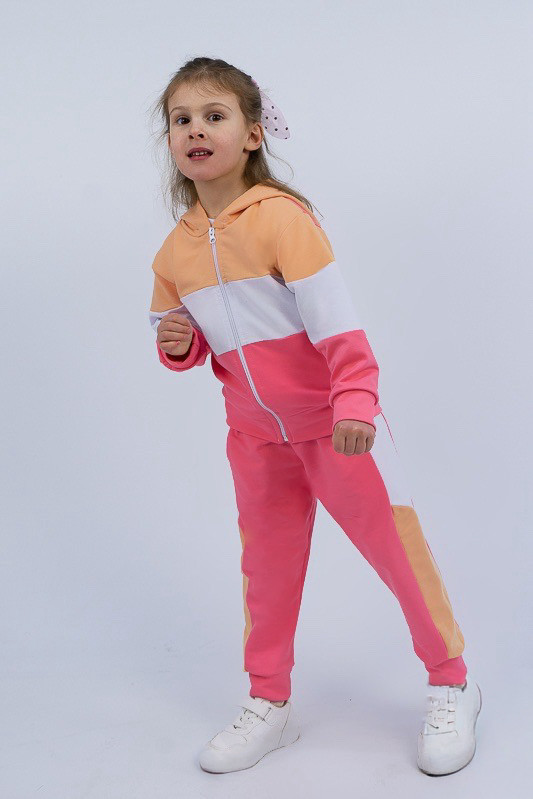 Яскравий спортивний костюм від ТМ «Гном» приємно порадує вашу дитину. Він стане незамінною частиною гардероба, так необхідною для фізичної активності вашої непосиди. Практична та зручна модель виконана в поєднанні різних кольорів. Костюм пошитий з м'якого трикотажного полотна – двунитка. Ще його називають футер стрейч. Трикотаж футер має позитивні споживчі якості: добре вбирає вологу; ефективно пропускає повітря; має високу теплоощадну здатність; не утворює пилок (ковтунів); не витягується при носінні; простий у догляді. Загальні рекомендації щодо догляду за костюмом – це машинне або ручне прання при температурі води не більше 30°C, прасувати по виворітному боці.
