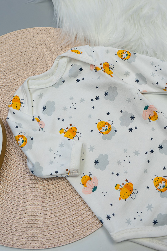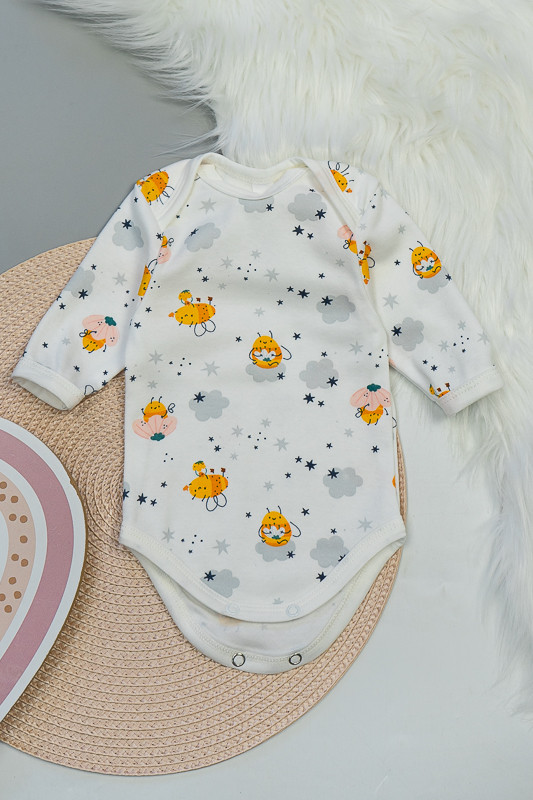 Боді з довгим рукавом від ТМ «Гном» виготовлений для малюків від народження до року. Виріб м'який і комфортний, що важливо для маленьких діток і виконує функцію натільної білизни. Боді виготовлений з щільного і приємного на дотик трикотажного матеріалу - інтерлок, який складається з бавовняного натурального волокна. Полотно еластичне (зберігає форму навіть при сильному розтягуванні), міцне, стійке до зносу, екологічне (не викликає алергію навіть у маленьких дітей, добре пропускає повітря, дозволяє шкірі дихати). Однак потрібно бути акуратним при пранні, а особливо з температурою води. Не дотримання правильного режиму може спричинити усадку. Рекомендований догляд за виробом: ручне або машинне прання на малих обертах при температурі не вище 30 °C із застосуванням м'якого миючого засобу, прасування при невисокій температурі з виворітного боку.