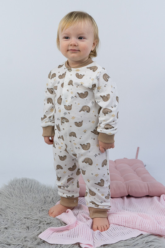 Легкий, теплий та яскравий комбінезон від ТМ «Гном» приємно порадує і маму, і малюка. Він зручний, комфортний та універсальний. Прекрасно підійде як домашній одяг і як одяг для сну. Для зручності по всій довжині комбінезона розташована застібка-кнопки, які переходять у внутрішній кроковий зріз. Краї ніжок і рукавів, а також горловина оброблені еластичним матеріалом. Виріб виготовлений з щільного і приємного на дотик трикотажного матеріалу - інтерлок, який складається з бавовняного натурального волокна. Полотно еластичне (зберігає форму навіть при сильному розтягуванні), міцне, стійке до зносу, екологічне (не викликає алергію навіть у маленьких дітей, добре пропускає повітря, дозволяє шкірі дихати). Рекомендований догляд за виробом: ручне або машинне прання на малих обертах при температурі не вище 30 °C із застосуванням м'якого миючого засобу, прасування при невисокій температурі з виворітного боку.