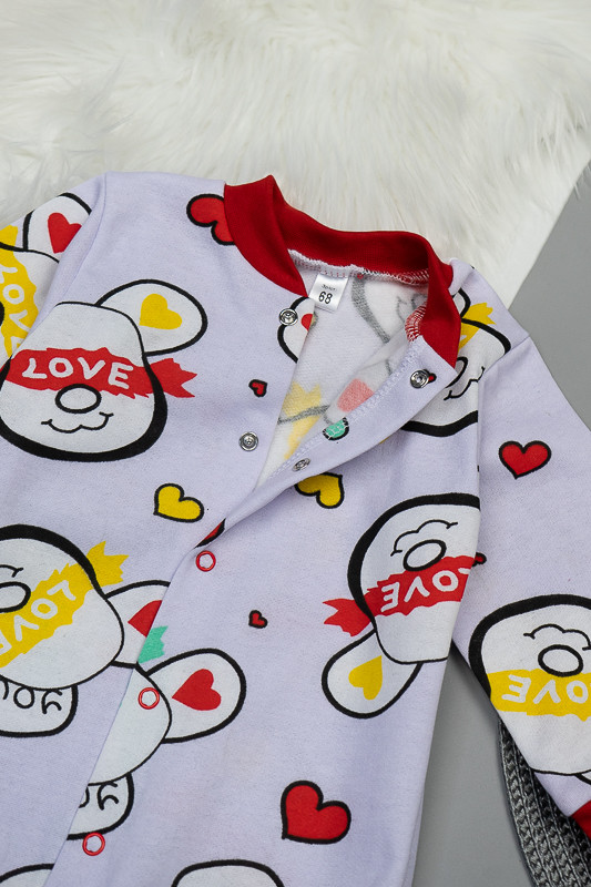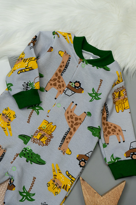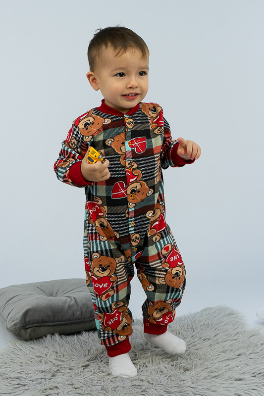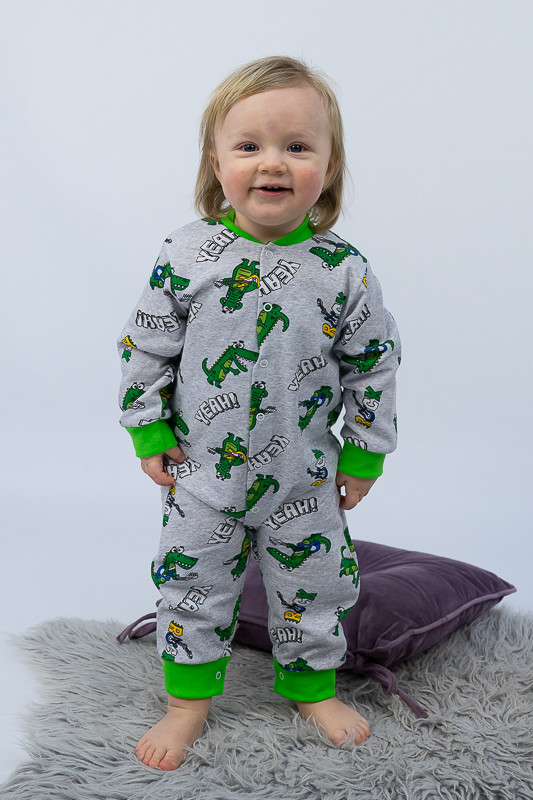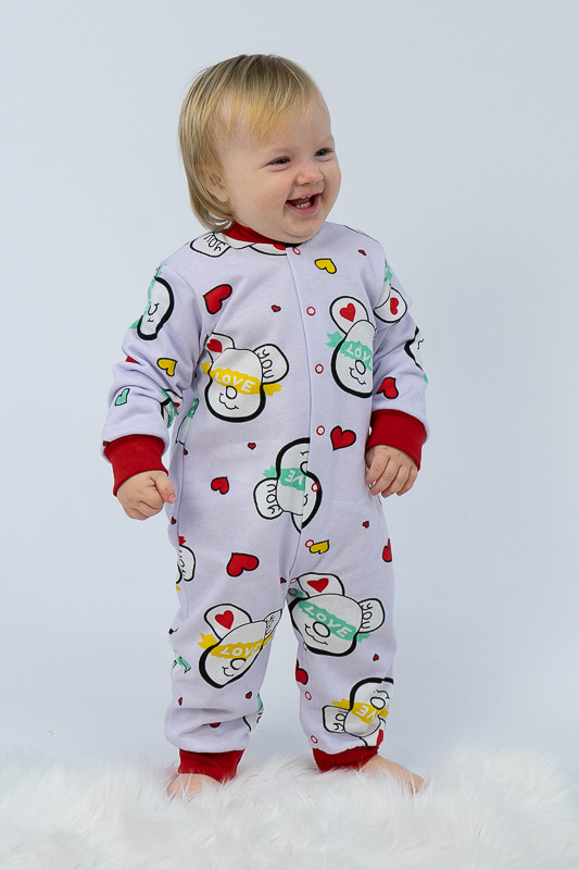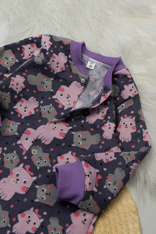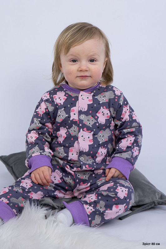 Легкий, теплий і яскравий комбінезончик від ТМ «Гном» приємно порадує і маму і малюка. Він зручний, комфортний і універсальний. Прекрасно підійде і як домашній одяг і як одяг для сну. Для зручності по всій довжині комбінезона розташована застібка кнопки, що переходить у внутрішній кроковий зріз. Зрізи ніжок, рукавів та горловина оброблені еластичним матеріалом. Виріб виготовлено з трикотажного полотна - начісний футер. У цього полотна лицьова сторона гладка, а виворітна з м'яким легким начісом. Начіс досить міцний, тому витримає будь-які навантаження, навіть самі інтенсивні рухи не викличуть зламів або складок на речах. Полотно стійке до появи затягувань і ковтунів. Вироби з такого матеріалу зручні, практичні та прослужить Вам дуже довго. Однак є деякі негативні моменти - матерія погано реагує на вплив прямих сонячних променів і високих температур при пранні. Тому, щоб виріб не дав усадку, прати його рекомендують при температурі не вище 30-40°C. Прасування тільки з лицьової сторони.