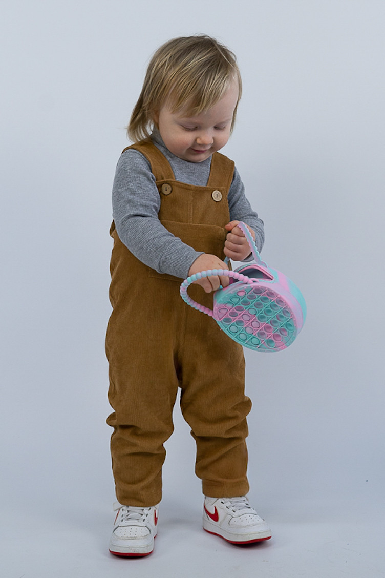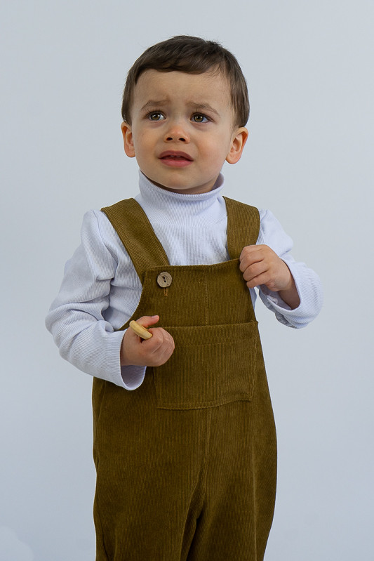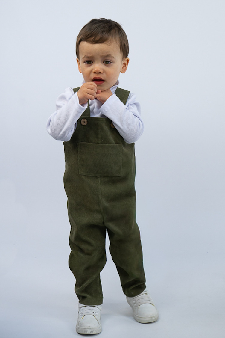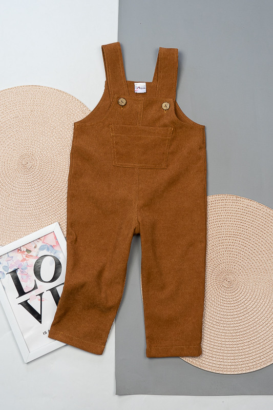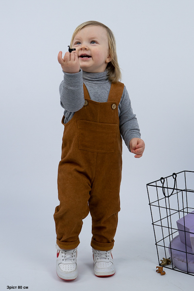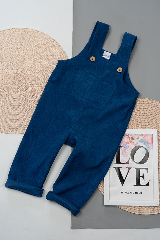 Зручний та практичний комбінезон на бретелях для самих маленьких виготовлений з мікровельвету. Це натуральна тканина з високою щільністю, легка та приємна на дотик. Передню частину виробу прикрашає велика нагрудна кишеня. Бретелі застібаються на великі ґудзики, якими можна регулювати довжину бретелей. Вироби з вельвету витримують регулярне прання при температурі 40°C та сушіння в сушильній машині або на відкритому повітрі.