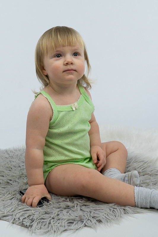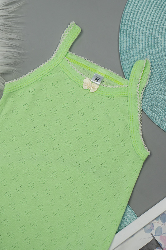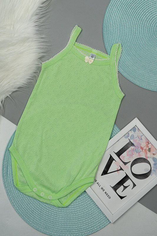Білизняний боді-топ для самих маленьких леді виконаний з м'якого і фактурного полотна - трансфер, яке застосовується для виготовлення натільної білизни. Це натуральне бавовняне полотно з високою розтяжністю і невеликим орнаментом у вигляді «дірочок». Вироби з трансферу прекрасно зберігають форму, здатні витримати велику кількість пранів, не дають усадки, не покриваються ковтунами. При правильному догляді довгий час не втрачають первинний вигляд. Відмінна повітропроникність і гігроскопічність, що забезпечує пухку будову матеріалу. Рекомендується прати у пральній машині при температурі води не більше 40°С.