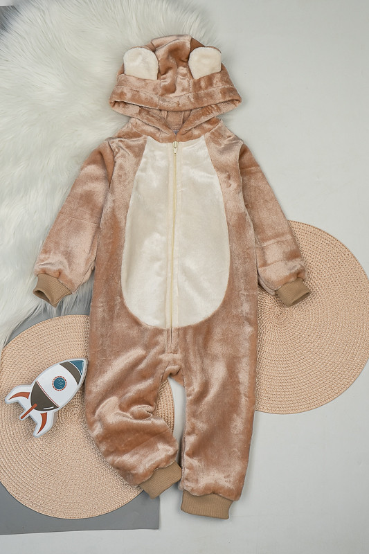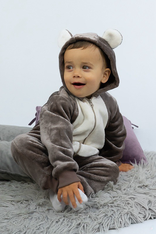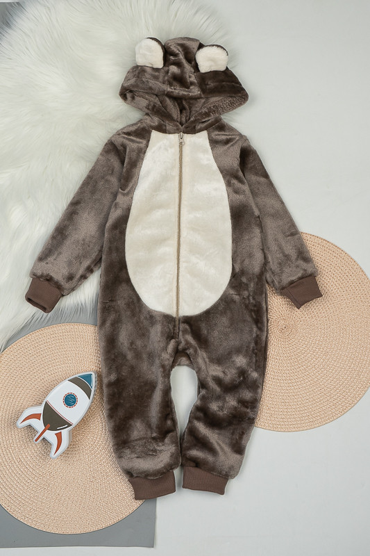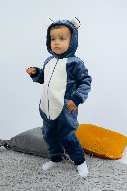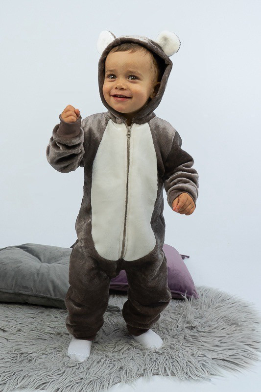 У м'якому плюшевому комбінезончику від ТМ «Гном» ваш малюк виглядатиме як маленький ведмедик. Це видають вушка на капюшоні та вставка молочного кольору по передній частині. Комбінезон теплий та зручний, чудово підходить як домашній одяг та як одяг для сну. Для зручності застібкою служить блискавка. Пошито виріб з тонкої махри або велсофту. Це трикотаж з м'яким ворсом. При цьому матеріал дуже легкий, повітропроникний, гіпоалергенний. Вироби з велсофту не вимагають особливого догляду, вони не розтягуються і не сідають під дією високої температури та інших факторів, при пранні не линяє.