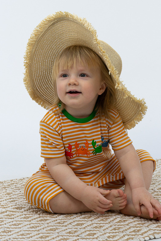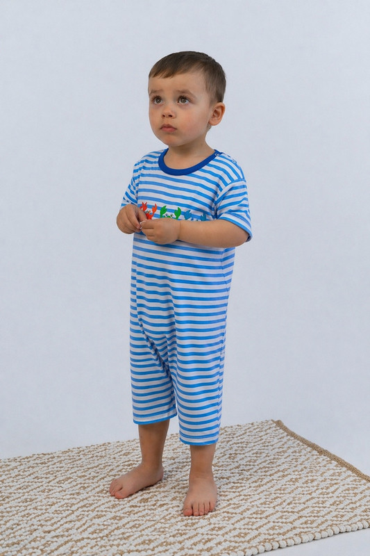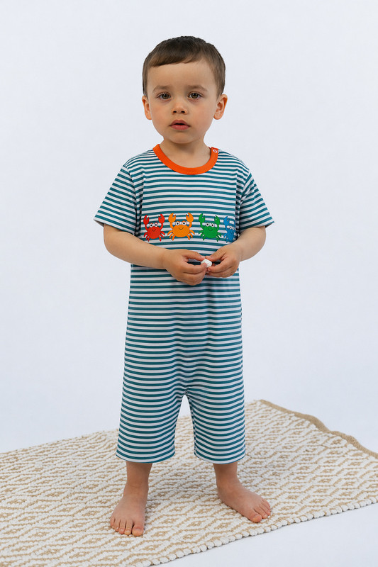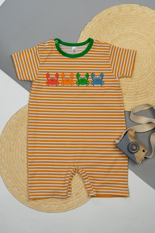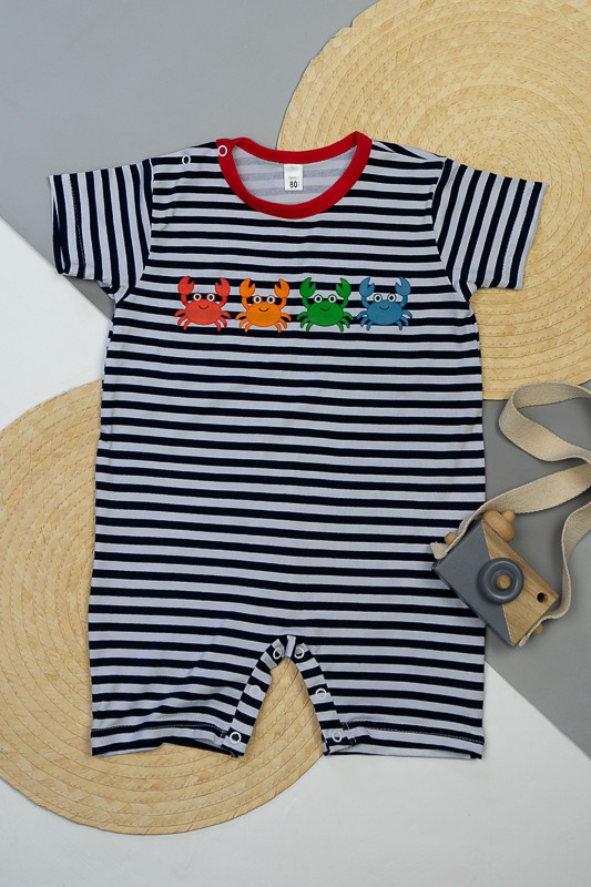 ТМ «Гном» пропонує стильний і комфортний літній комбінезон у смужку для самих маленьких, в якому ваша крихітка буде відчувати себе легко і вільно. Вільний крій не обмежує рухи, по плечу та між ніжок знаходяться зручні застібки - кнопки, які дають можливість швидко і без проблем переодягнути малюка або поміняти підгузок. Модель пошита з легкого віскозного полотно з хорошою еластичністю. Рослинні волокна в складі віскози зробили її схожою на бавовну. Віскоза також добре вбирає вологу, приємна на дотик, повітропроникна і не викликає алергію. Рекомендований догляд за виробом - це ручне прання або машинне на малих обертах при температурі не вище 40 градусів, із застосуванням м'якого миючого засобу. Прасувати вироби потрібно тільки з вивороту.
