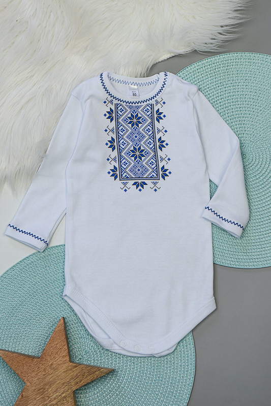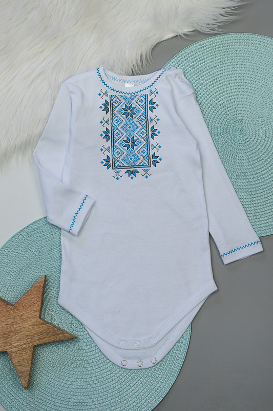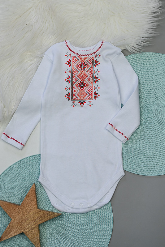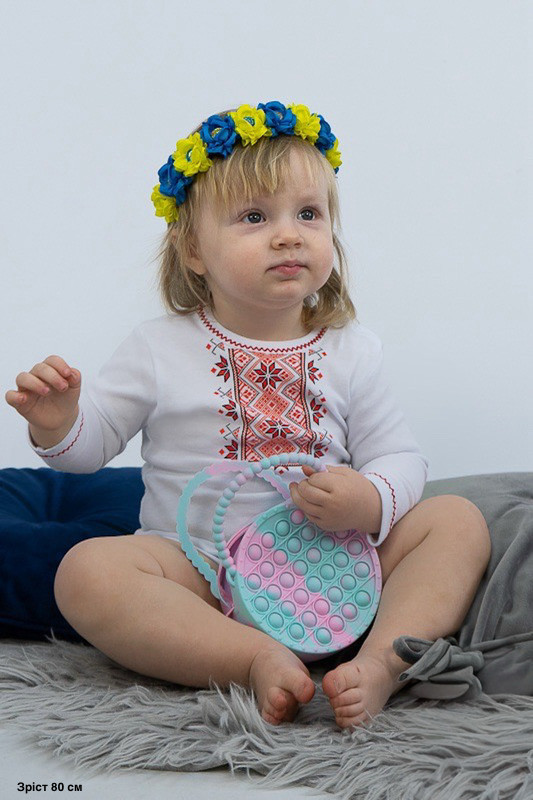 Боді для новонароджених від ТМ «Гном» прикрашений накатом в стилі української вишиванки. Модель виготовлена з інтерлока. Це трикотажне полотно, основою якого є бавовна. Це дуже ніжний і приємний до тіла матеріал, який володіє підвищеною теплоізоляцією, тому зберігає тіло малюка в теплі та комфорті. При пранні рекомендується вибирати делікатний або ручний режим, при температурі не вище 40°C.