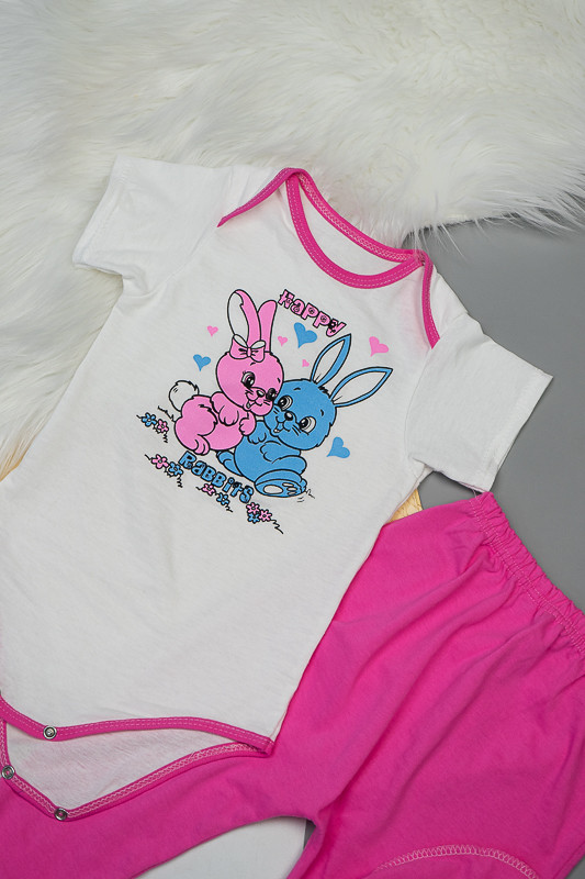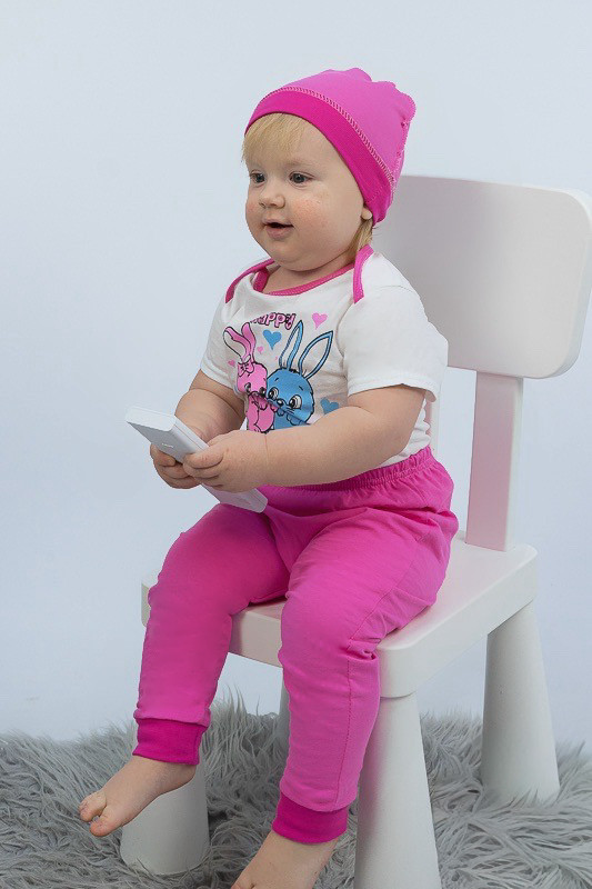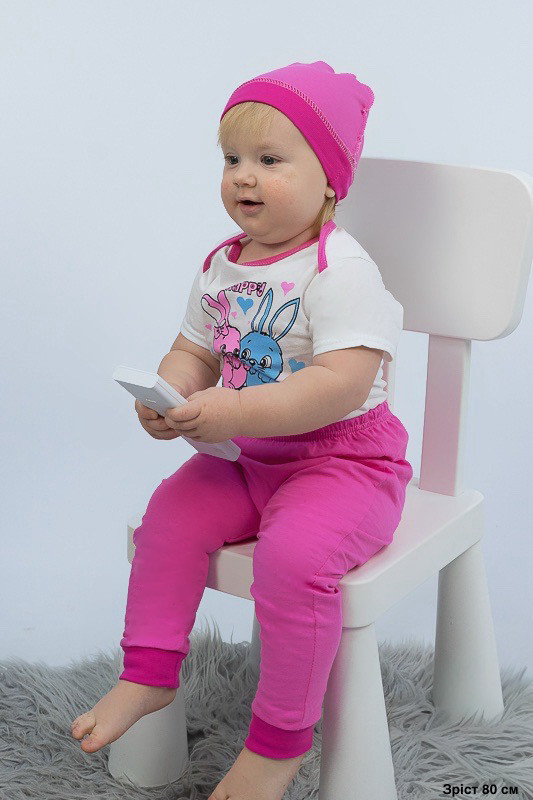 Ясельний комплект виготовлений для малюків від народження до 9-12 місяців. Складається він з боді на короткий рукав, штанів на манжетах та шапочки. Комплект прикрашений яскравим малюнком. Модель пошита з куліру - тонкого трикотажного полотна, яке не викликає роздратування на шкірі дитини. Відмінно переносить прання, не линяє і не змінює колір. Зберігає свою первісну форму. Рекомендується прати при температурі до 40°C в делікатному або ручному режимі, не використовувати відбілювачі або порошки з відбілювачами.
