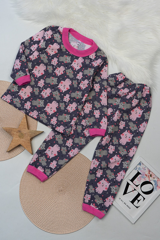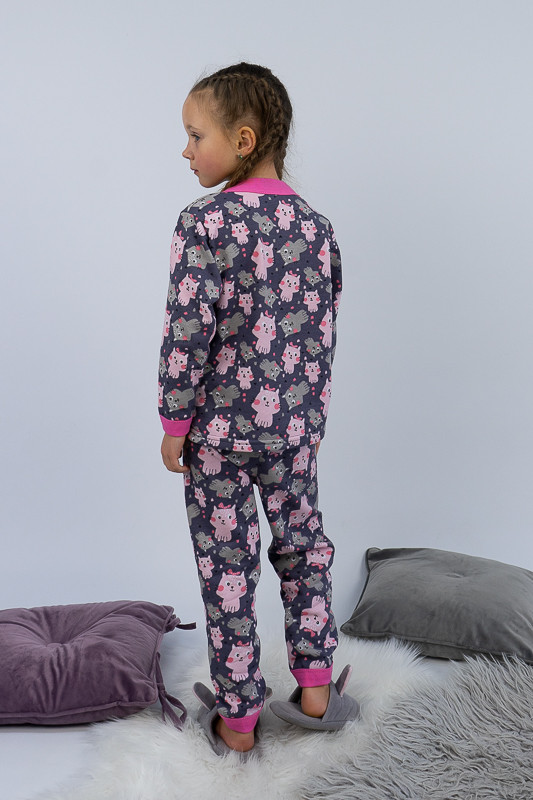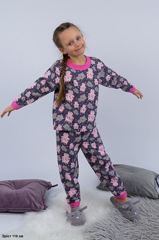 Приємна та затишна піжама від ТМ «Гном» виготовлена для дівчаток дошкільного та молодшого шкільного віку. Комфортний легкий матеріал та вільний крій сприяють повноцінному відпочинку та приємному сну. Піжама виготовлена з трикотажного полотна – начісного футера, основою якого є 100% бавовна. Лицьова сторона матеріалу гладка, схожа на кулірне переплетення, виворіт полотна має невеликий м'який ворс. Плюсами футера є висока щільність, гігроскопічність та повітропроникність. Через натуральну основу матеріал можна вважати екологічним та гіпоалергенним. Є деякі негативні моменти – матерія погано реагує на вплив прямих сонячних променів та високих температур під час прання. Тому, щоб виріб не дав усадку, прати його рекомендують за температури не вище 30-40°C.