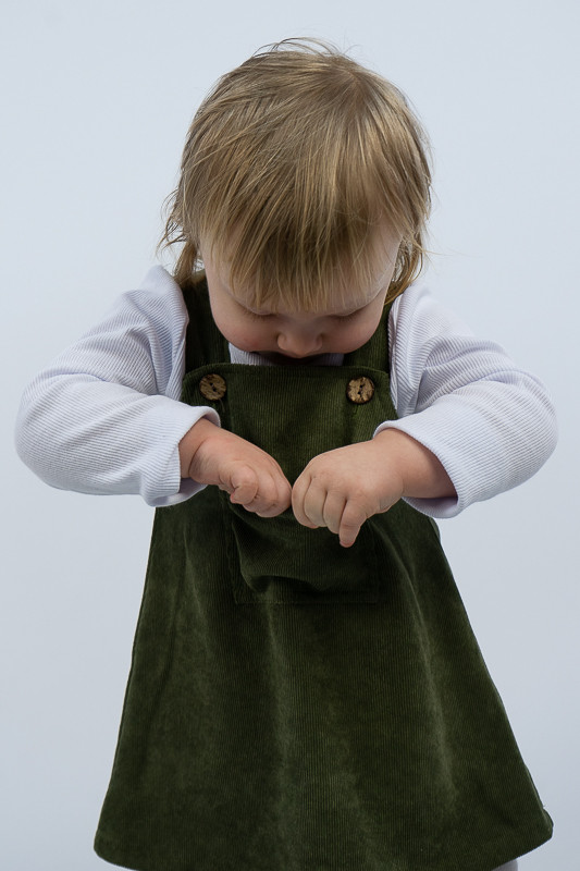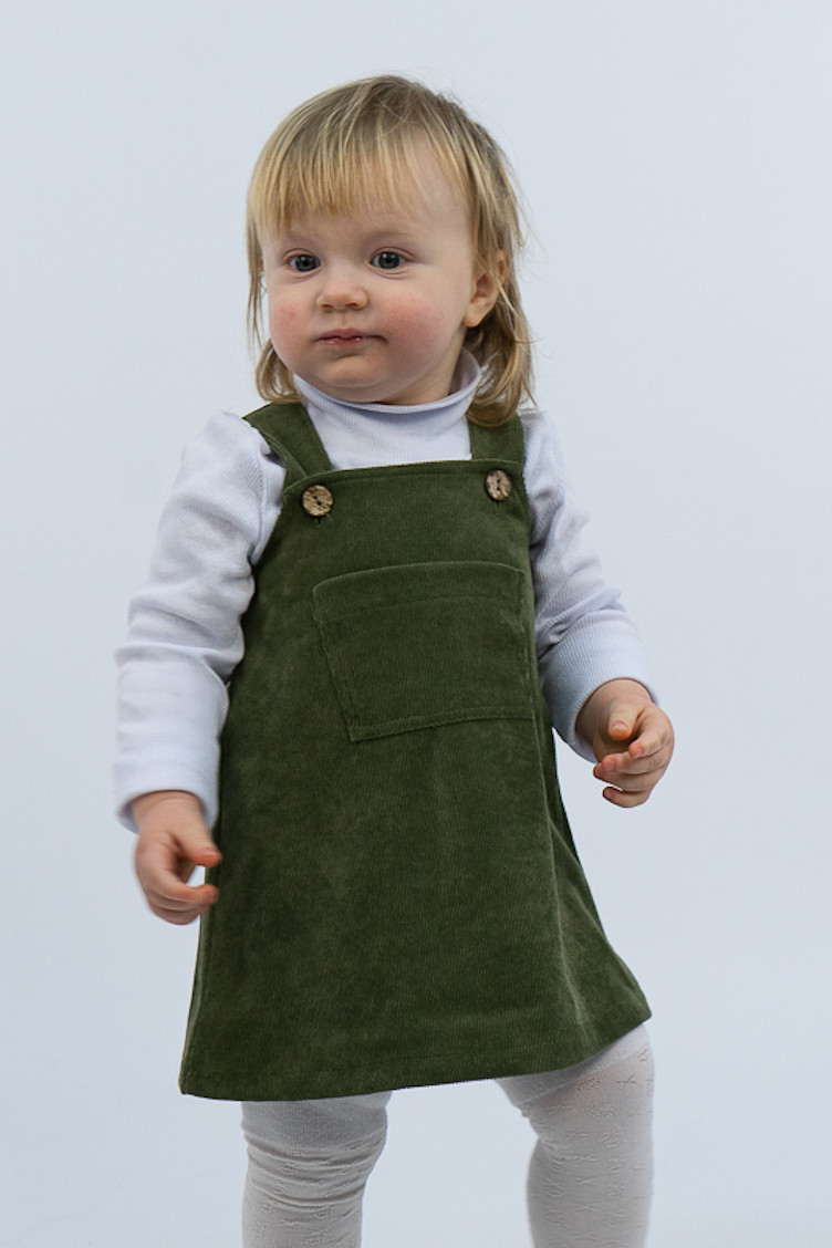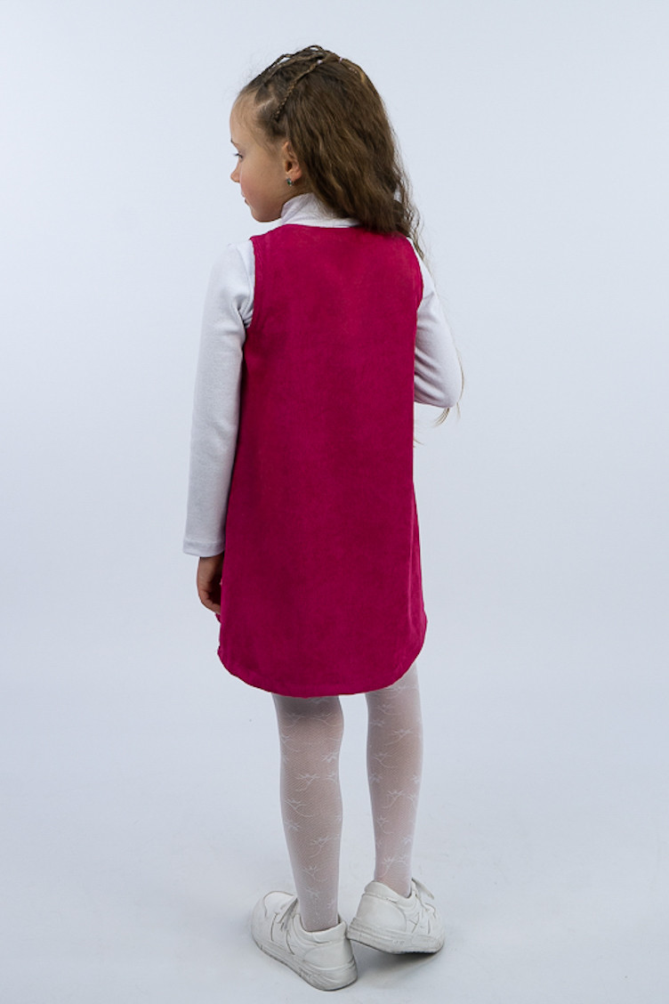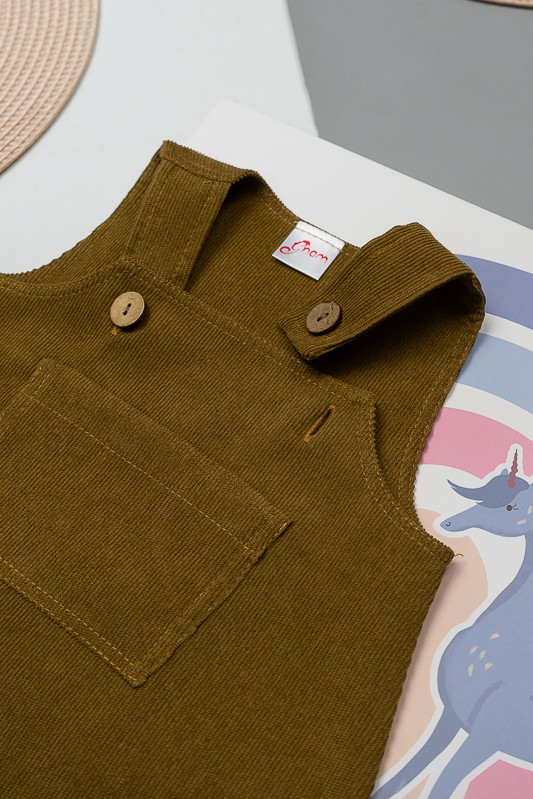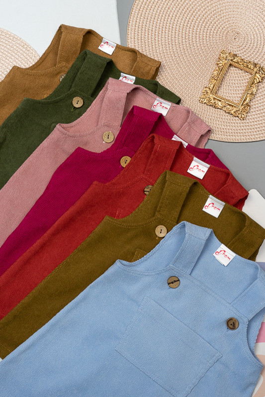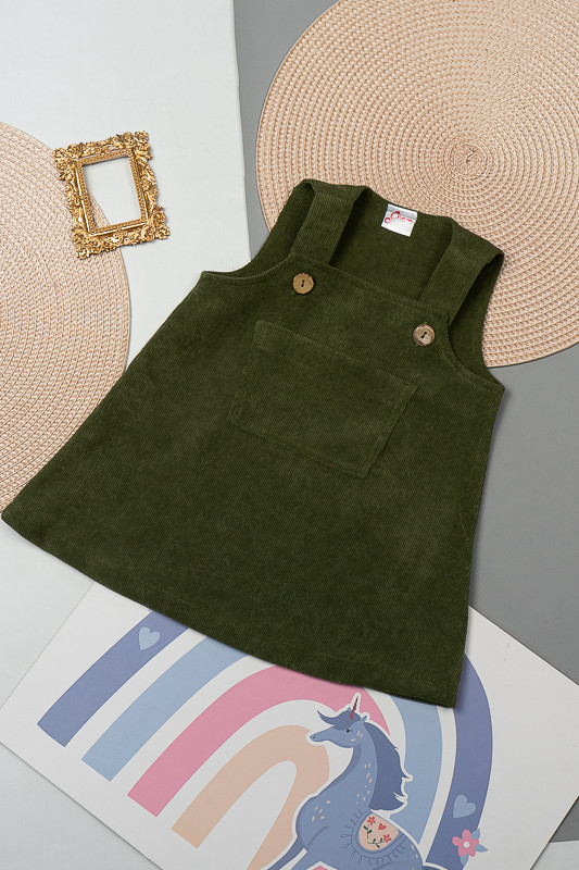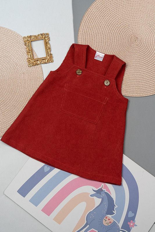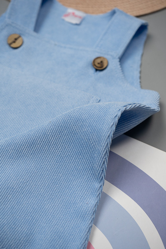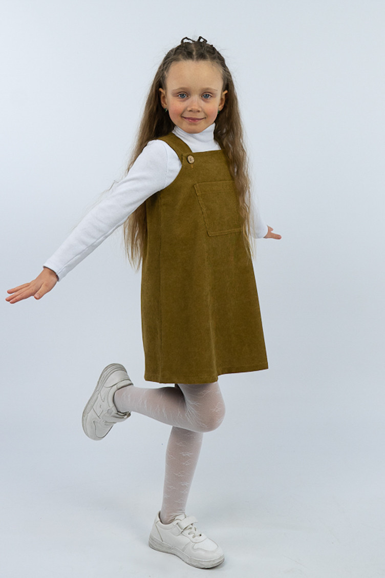 Зручний та практичний сарафан на бретелях для маленьких дівчаток виготовлений з мікровельвету. Це натуральна тканина з високою щільністю, легка та приємна на дотик. Передню частину виробу прикрашає велика нагрудна кишеня. Бретелі застібаються на великі ґудзики, якими можна регулювати довжину бретелей. Вироби з вельвету витримують регулярне прання при температурі 40°C та сушіння в сушильній машині або на відкритому повітрі.