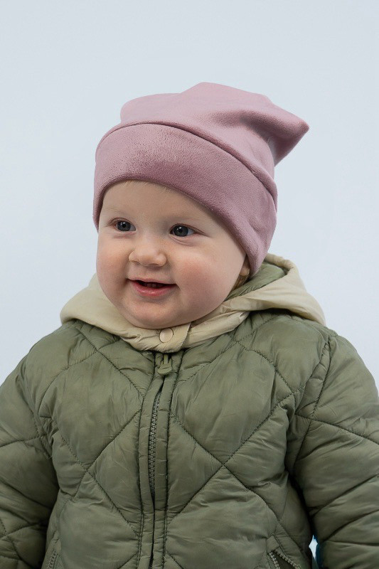 Демісезонна шапка для самих маленьких дітей відмінно підійде для осінньої погоди. Модель пошита з щільного трикотажного велюру на флісі (93% поліестер, 7% спандекс). З виворітного боку матеріал має коротковорсову поверхню, яка забезпечує додаткове утеплення виробу. Матеріал не мнеться та не потребує складного догляду. Рекомендується делікатне прання в теплій воді.