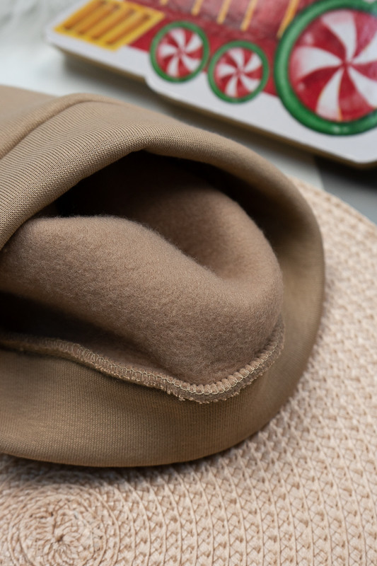 Тепла шапка для дітей від одного до шести років. Виготовлена із щільного трикотажного полотна - тринитка на флісі. Це теплий та м'який матеріал з високим вмістом бавовни. Він добре вбирає вологу, не парить, дарує тепло та відчуття затишку. Рекомендований догляд - це делікатне прання при температурі не більше 35°C, прасування тільки з лицьової сторони.