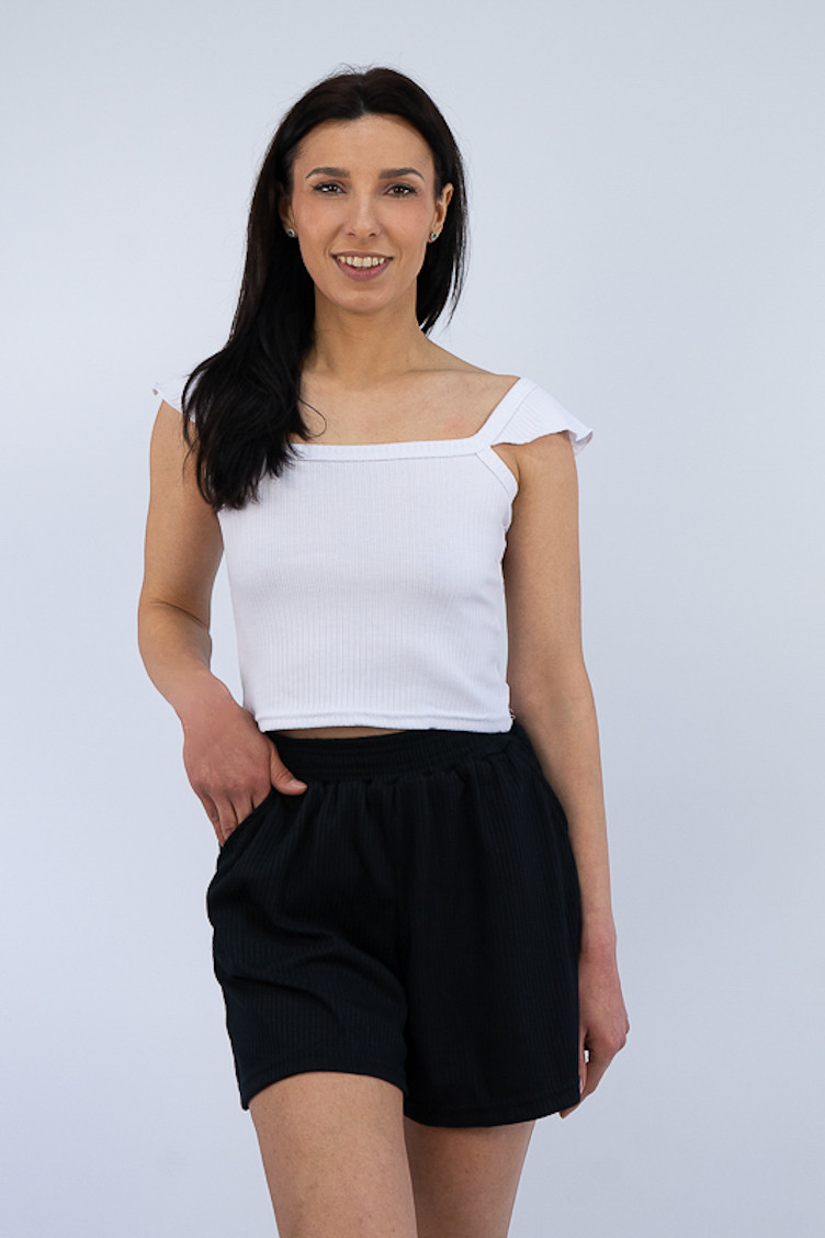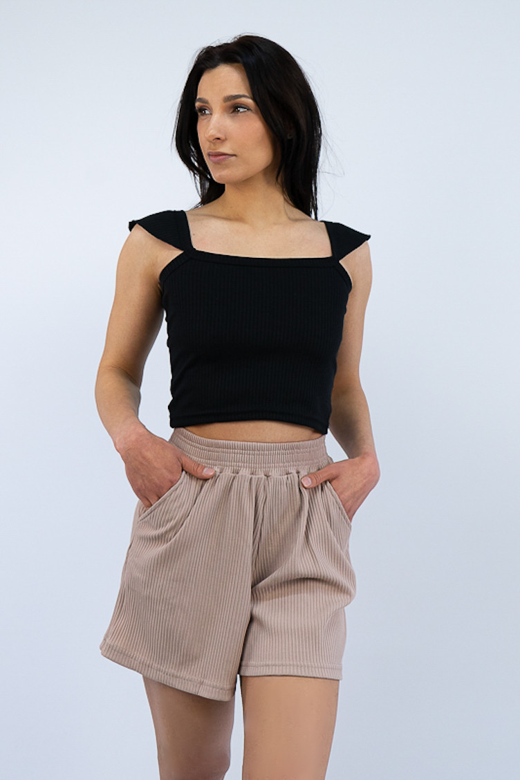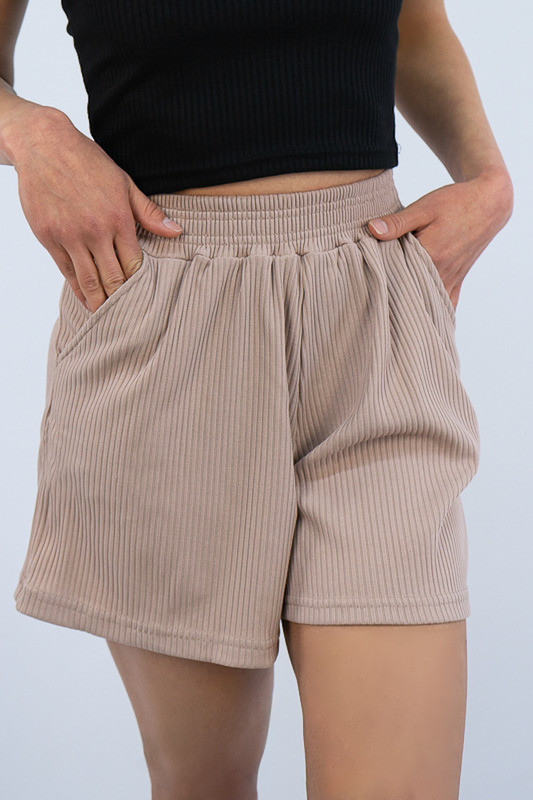Широкі шорти із зручною посадкою стануть відмінним доповненням до футболки, майки чи топу. Широкий пояс, бічні кишені, а також м'який матеріал роблять шорти зручними та комфортними у повсякденному носінні. Виготовлені вони з трикотажу мустанг, що є стрейчевим полотном у вигляді резинки, тобто чергування лицьових і виворітних рядів. Тканина приємна до тіла, не надто тонка. Підходить для пошиття топів, суконь, стильних трикотажних костюмів, кардиганів та ін. Прати вручну у воді не більше 30°C, сильно не віджимати, прасувати не обов'язково.